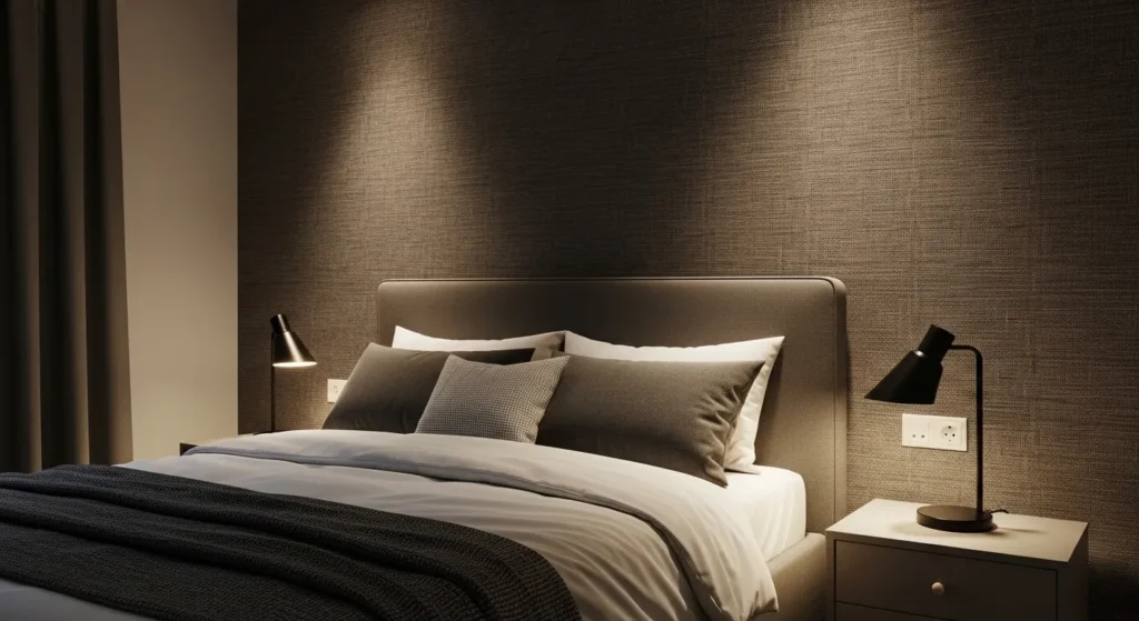 Pair with warm wood furniture, soft bedding, and ambient lighting to maintain intimacy. This approach balances moody richness with comfort, creating a bedroom that feels both luxurious and restful.
