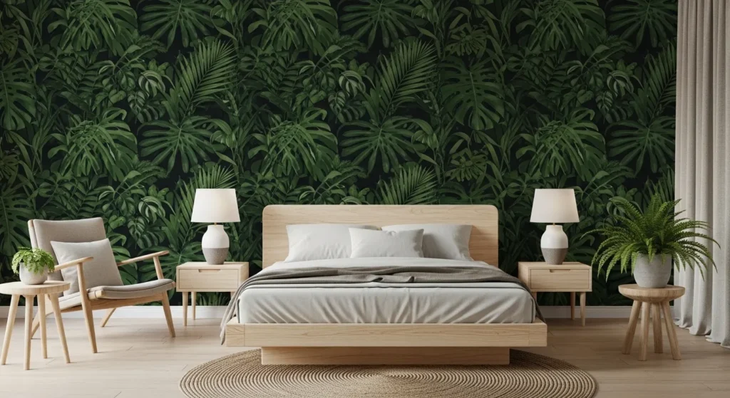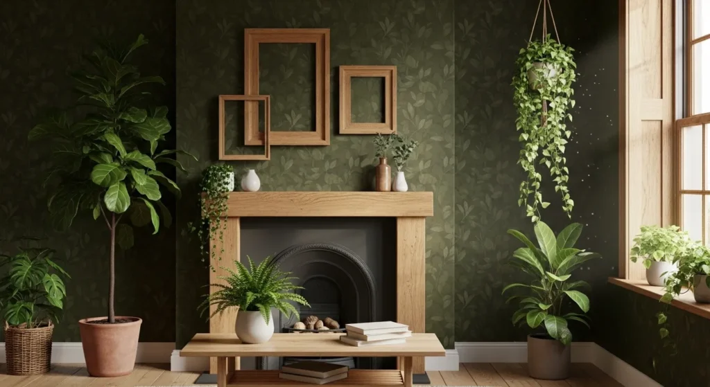 Pair with light-colored furniture, wooden elements, or soft fabrics to balance darkness. This approach makes rooms feel enveloping yet lively, combining natural inspiration with moody elegance.