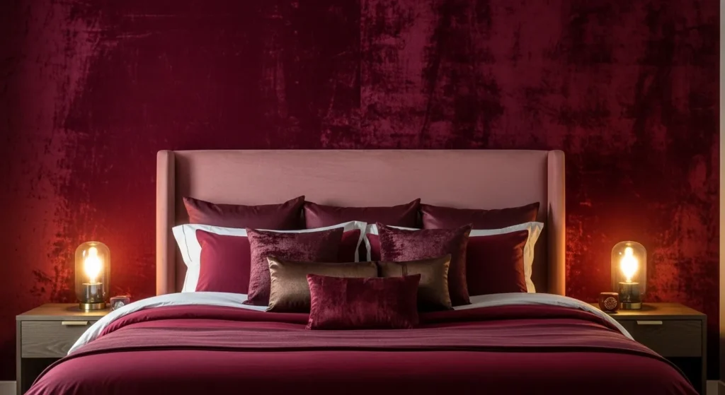 4. Burgundy Velvet-Effect Wallpaper for Luxurious Warmth