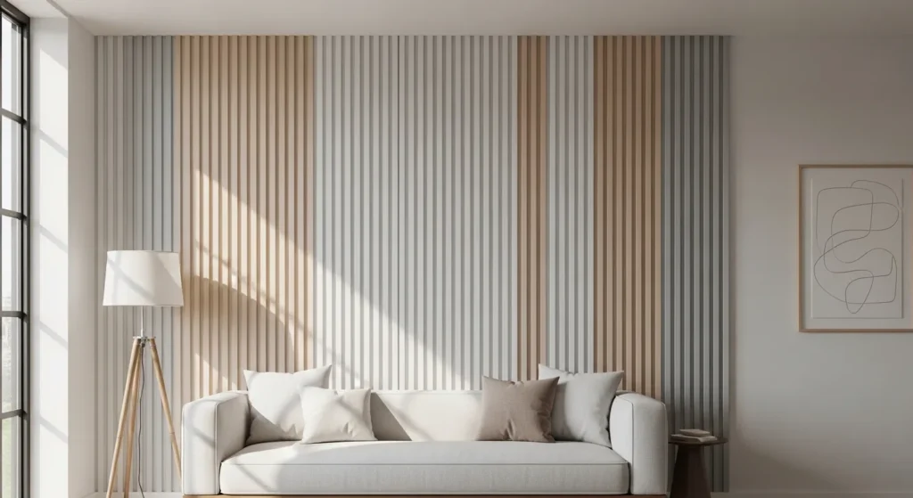 Vertical wall panels add architectural depth while guiding the eye upward. The clean lines create a sense of structure and sophistication that works beautifully in modern interiors. Even simple panel designs can make a plain wall feel more custom and thoughtfully designed.