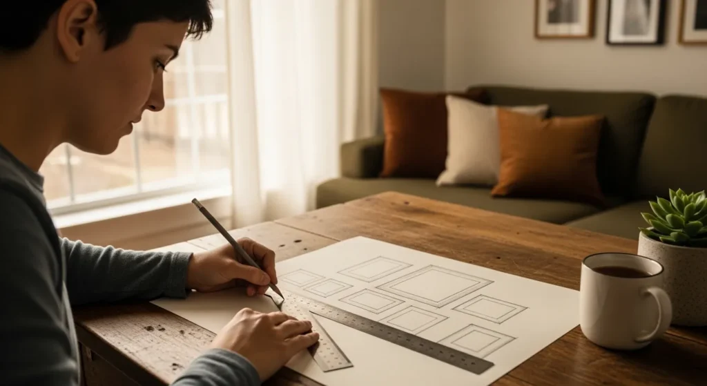 Jumping straight to hanging frames without planning is a common mistake. A lack of layout planning can result in uneven spacing, misaligned pieces, or awkward visual flow.