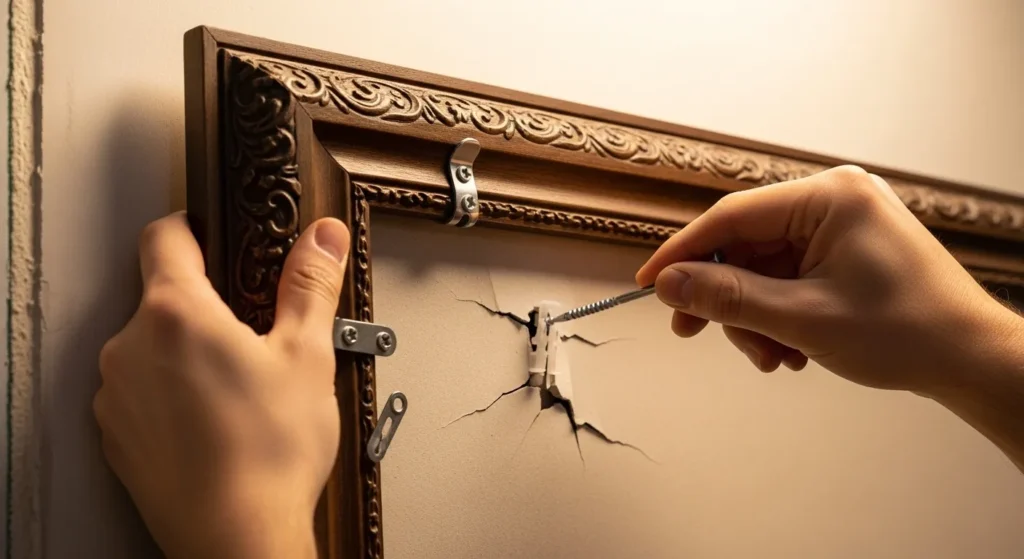 Frames that are too heavy for the hardware can fall and damage walls. Using weak nails or anchors is a common mistake.