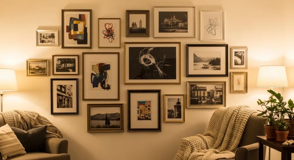 A gallery wall that doesn’t complement the room’s decor can feel out of place. Clashing styles, colors, or themes create visual tension.