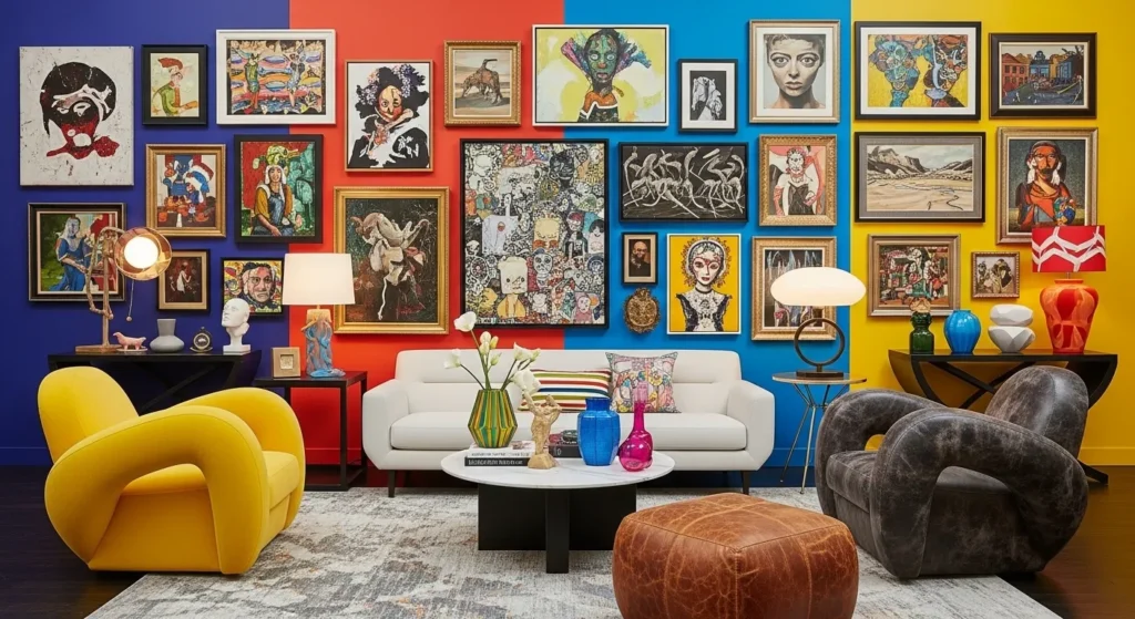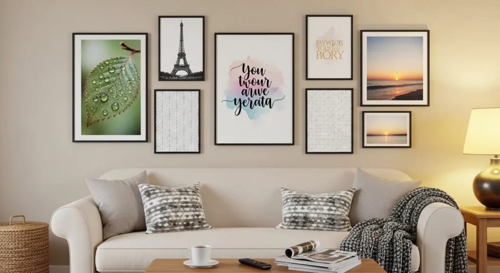 Stick to a theme, color palette, or style, even when mixing art types. This creates visual harmony and a cohesive story across the wall.