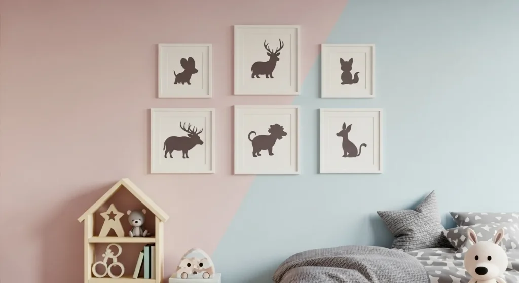 Silhouettes are a modern and minimal way to showcase favorite characters or animals. They simplify shapes into clean lines while maintaining recognizable figures that children love.
