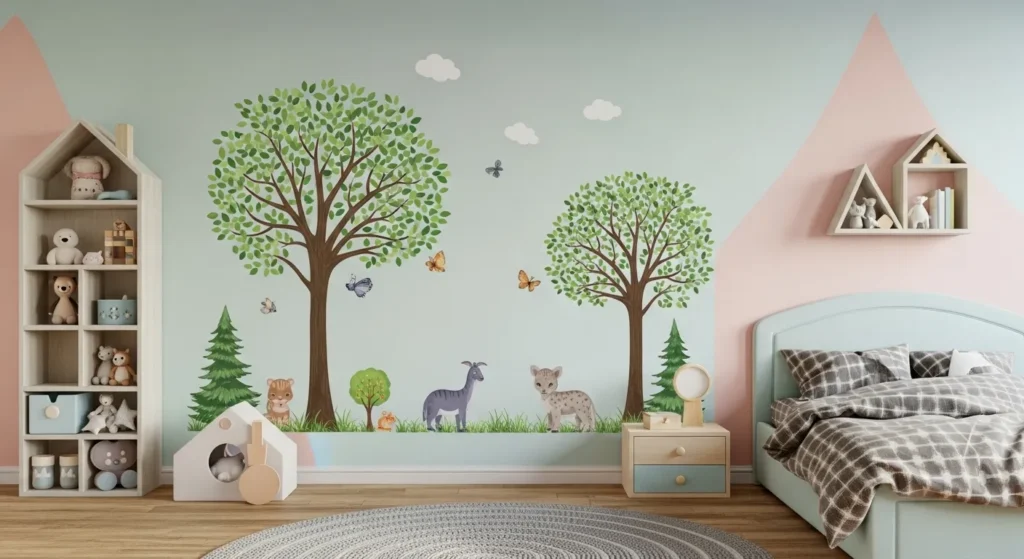 Removable wall decals are perfect for kids’ rooms because they are easy to apply and switch out as tastes change. Nature-themed decals—trees, mountains, or animals—add charm and depth to the space.