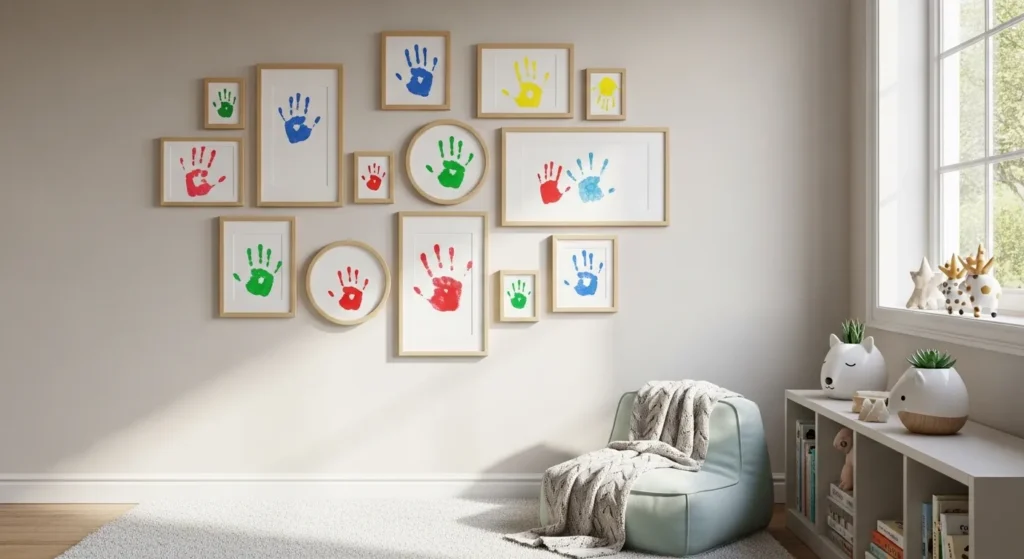 DIY handprint art is both sentimental and decorative. Children’s handprints in colorful paint framed on the wall capture a moment in time while adding a personal touch.