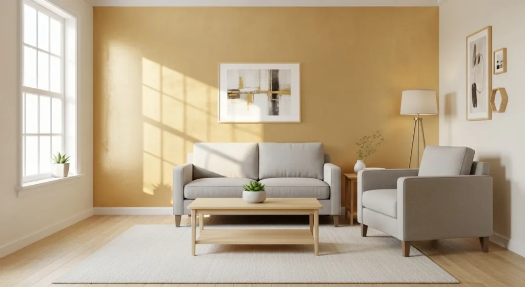 Metallic accent walls create impact while remaining timeless. Using muted or soft metallic tones ensures the wall feels stylish and elegant for years, enhancing light reflection and depth in small spaces.