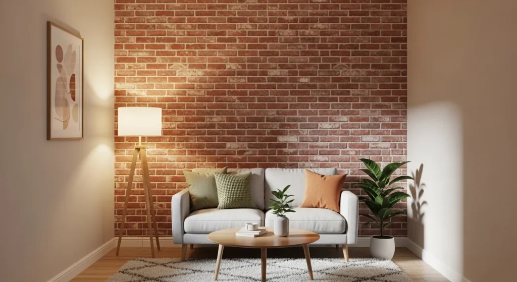 This approach works well in living rooms, kitchens, or entryways. The natural texture of brick contrasts beautifully with neutral furnishings and soft décor, creating a cozy yet stylish focal point.