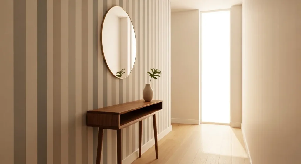 Vertical striped accent walls work well in bedrooms, hallways, or living areas. Using neutral or muted colours keeps the stripes timeless and adaptable to changing décor styles.