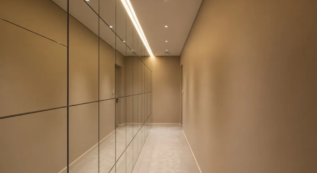 Mirrored accent walls are timeless and versatile. They enhance small areas dramatically without altering the structure, making them a practical and stylish choice for compact spaces that need visual interest.