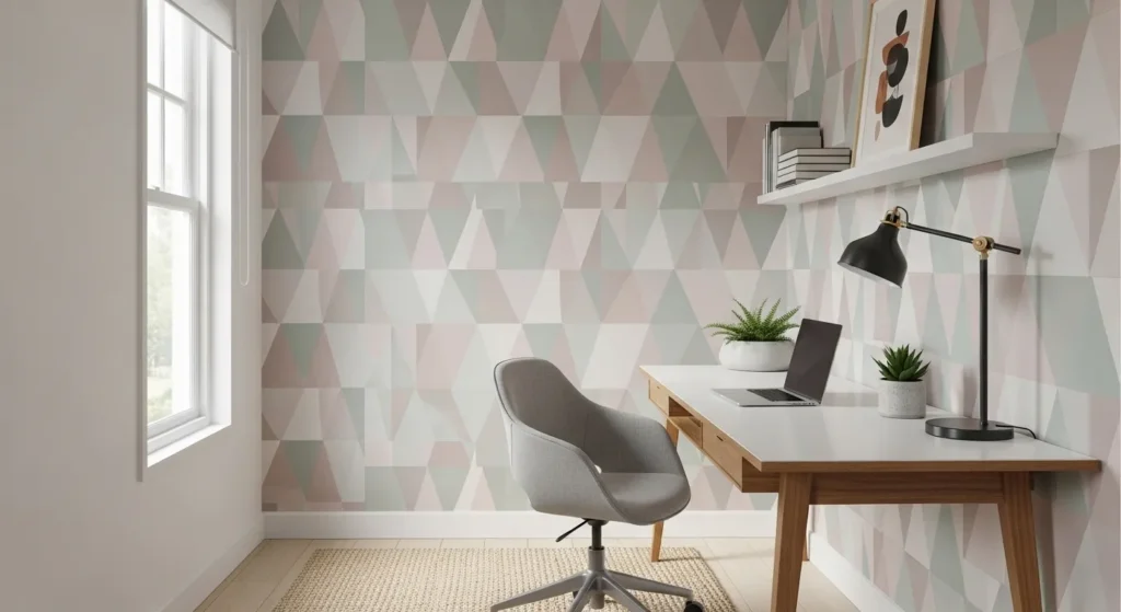 Geometric accent walls pair beautifully with neutral furnishings or metallic accents. The structured design adds style and sophistication while maintaining a sense of order in a small, cozy space.