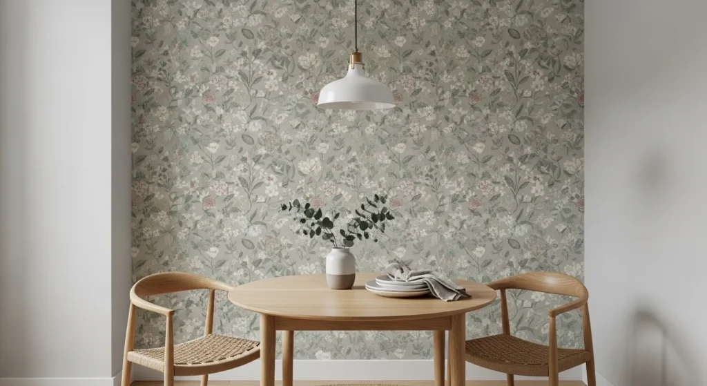Wallpaper can make a small accent wall feel layered and dynamic. Subtle patterns, such as soft florals or geometric designs, add visual interest without overwhelming the room.