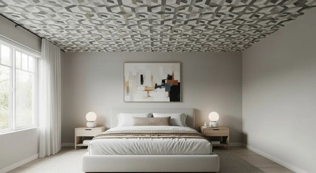 Paint is simpler and easier but rarely delivers the same wow factor. Wallpaper is perfect when you want ceilings to feel intentional, stylish, and visually engaging.