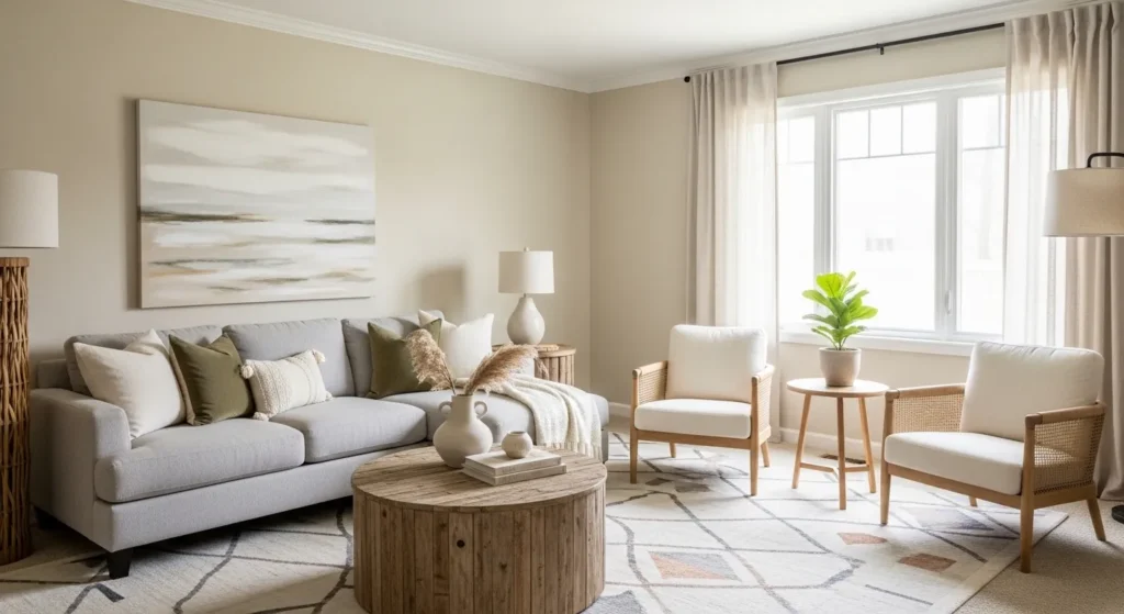 Paint works best for understated, calming spaces. Soft neutrals or muted shades create a serene backdrop, allowing furniture, textiles, and décor to shine without competing with wall design.