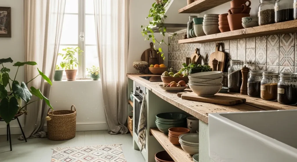 Boho wall storage combines beauty and practicality, keeping items tidy while adding texture and personality. Hanging baskets, macramé organizers, and layered shelves transform walls into functional art.