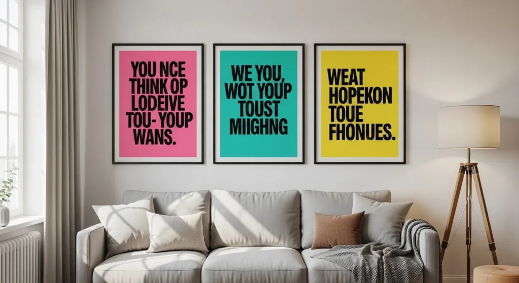 Bold typography prints in high-energy colors bring both style and purpose to your walls. Words printed in vibrant pink, orange, teal, or electric blue can shift the emotional tone of a room instantly. Whether it’s a confidence-boosting phrase or a power statement, the combination of color and typography creates visual movement.