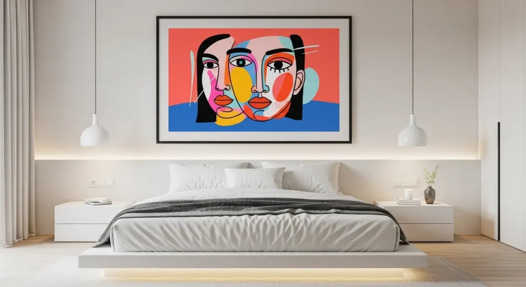 To make it work, pair the artwork with simple furniture in beige, white, or soft gray. Let the print carry the visual weight. A single oversized piece above a sofa or bed adds dramatic impact while maintaining balance. This approach is ideal for minimalist interiors needing energy without clutter.
