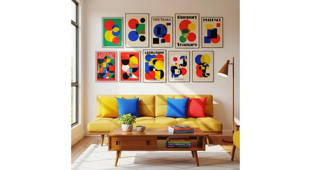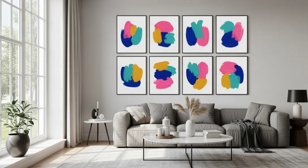 Use two or three matching prints in a grid layout. This keeps the wall structured while the colors add vibrancy. It’s a perfect solution for small spaces that need personality without visual overload.