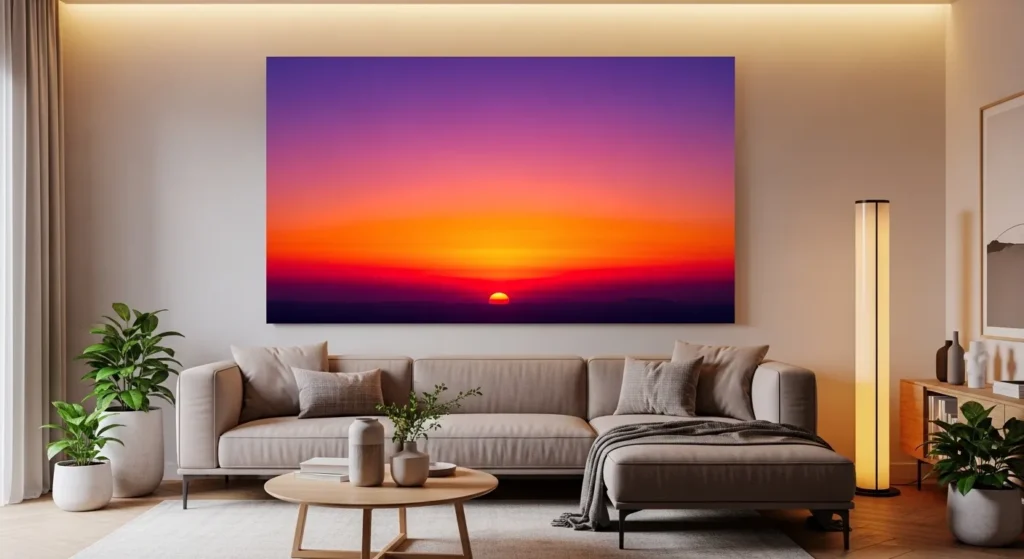 Gradient prints inspired by sunsets bring warmth and optimism into a room. Smooth transitions from pink to orange or purple to gold create visual flow that feels uplifting and dynamic.