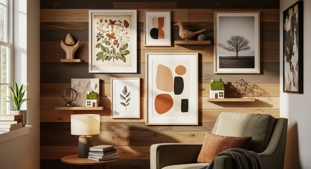 Layer framed prints with small sculptures, woven items, or shadow boxes. The combination of textures and materials creates warmth, depth, and a personalized statement that enhances comfort and style.