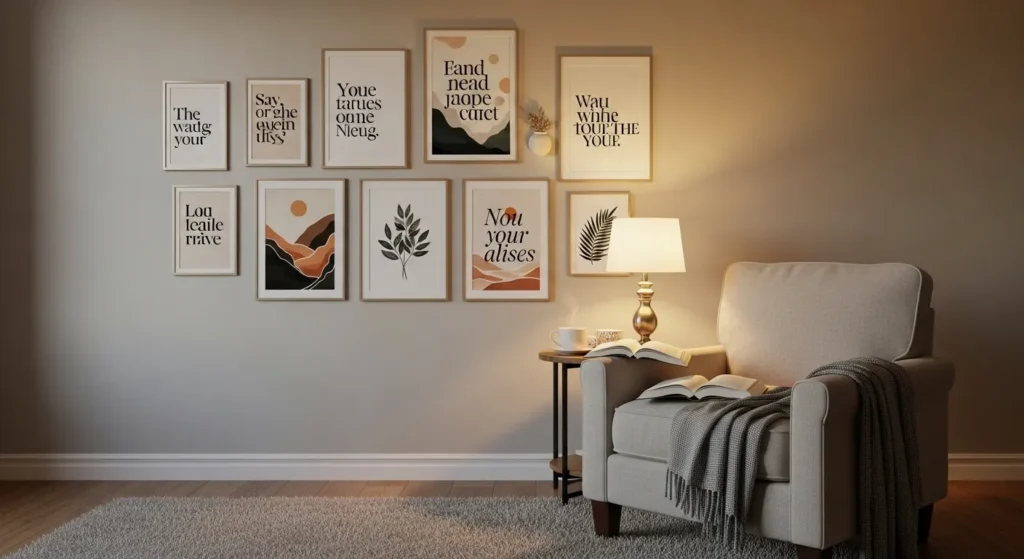 A gallery wall adds personality and inspiration to your nook. Mix framed illustrations, motivational quotes, or personal prints to reflect your tastes while making the wall visually engaging.