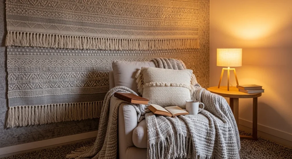Woven wall hangings add texture, warmth, and a tactile element to your reading nook. Neutral or soft tones enhance coziness without overwhelming the space.