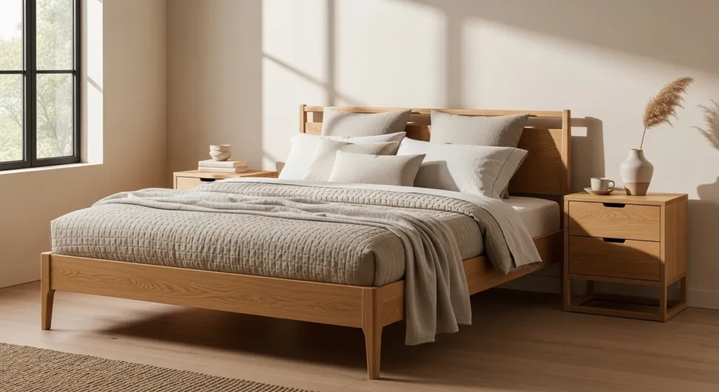 Natural textures from wood also prevent the room from feeling too flat or monotone. A wooden bed frame, nightstand, or dresser can ground the design and add subtle contrast to the beige palette. This combination creates a bedroom that feels balanced, warm, and naturally stylish without needing bold colors or complicated decor.