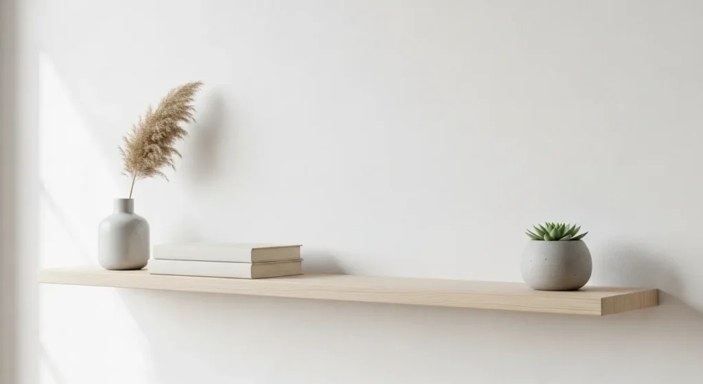 One of the most important floating shelf styling tips for small walls is knowing when to stop. Overfilling shelves makes a small wall feel heavy and cramped. Instead, allow negative space between objects. That empty space is not wasted — it actually highlights your decor and gives the room a clean, modern feel.