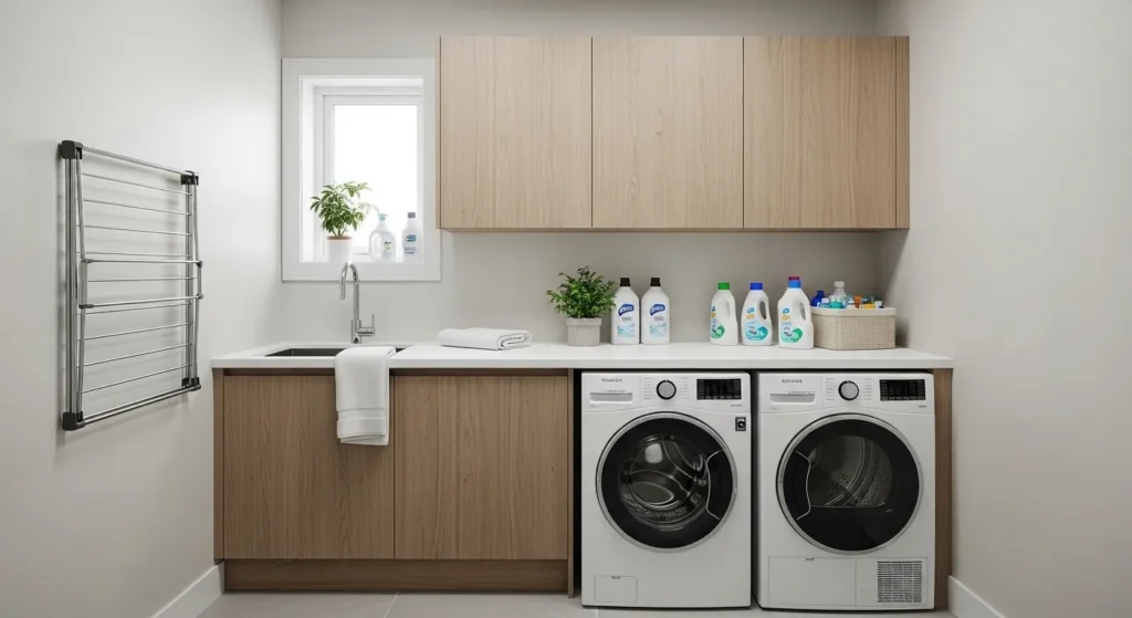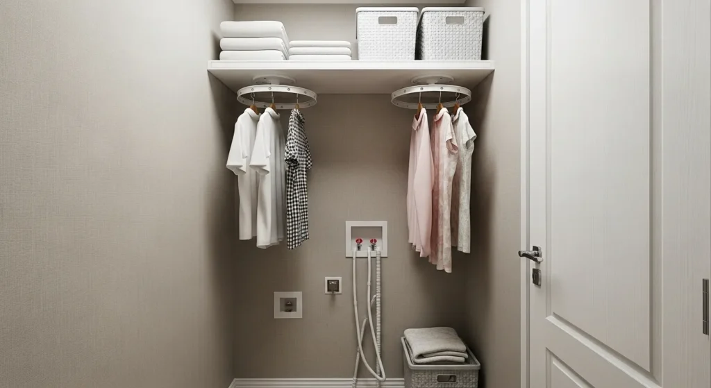 This combination maximizes vertical storage, keeps items organized, and makes laundry tasks more efficient. Multi-level storage works especially well in tight spaces where every inch counts.