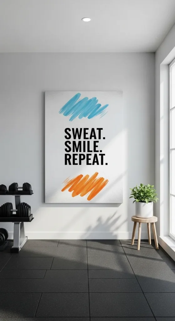 Hang a single large piece or a series of smaller canvases for a gallery effect. The repetition of inspiring words keeps focus and mental energy high during workouts, turning the wall into a motivational tool.