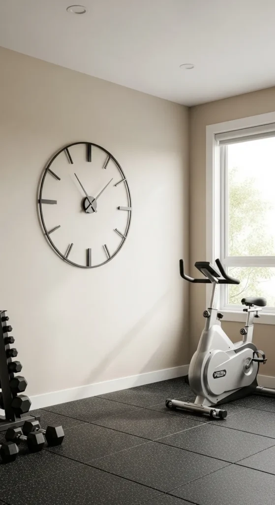 Choose a clock with large numbers or an eye-catching color that complements the room’s aesthetic. Hanging it at eye level makes it functional and visually balanced, creating a practical yet motivating wall feature.