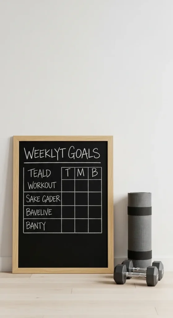 Use colored chalk or markers to make it visually appealing. Position the chalkboard where you can see it while exercising to keep your goals front and center, reinforcing discipline and focus during workouts.