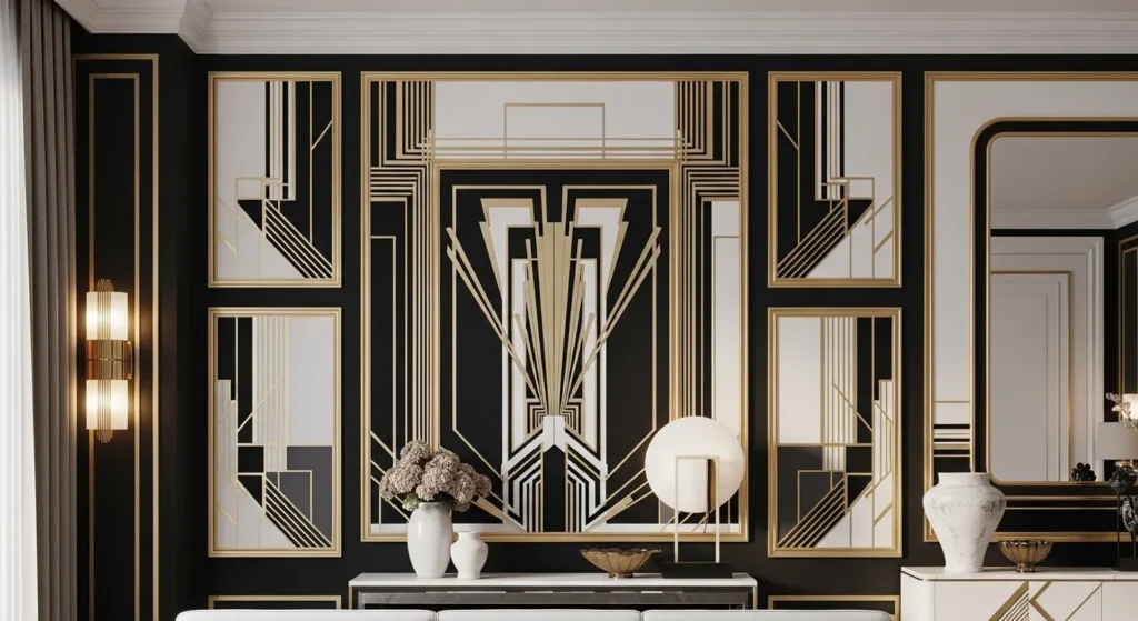 Mixing colors, metallics, and geometric motifs allows you to create Pinterest-worthy walls that are both elegant and functional. Whether bold or subtle, these ideas prove that retro Art Deco style can be refreshed for today’s homes, adding charm, personality, and visual impact wherever it’s used.