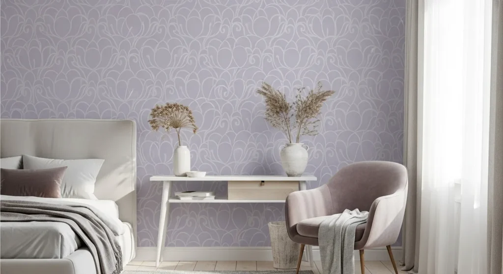 Combine with light-colored furniture, metallic accessories, and neutral textiles to enhance sophistication. Lavender waves offer a gentle yet stylish nod to vintage Deco style, creating a dreamy, Pinterest-ready aesthetic.