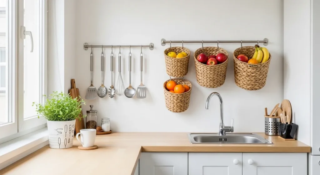 Hanging wall baskets provide storage and decor in one. Perfect for kitchens or entryways, they keep items accessible and off surfaces.
