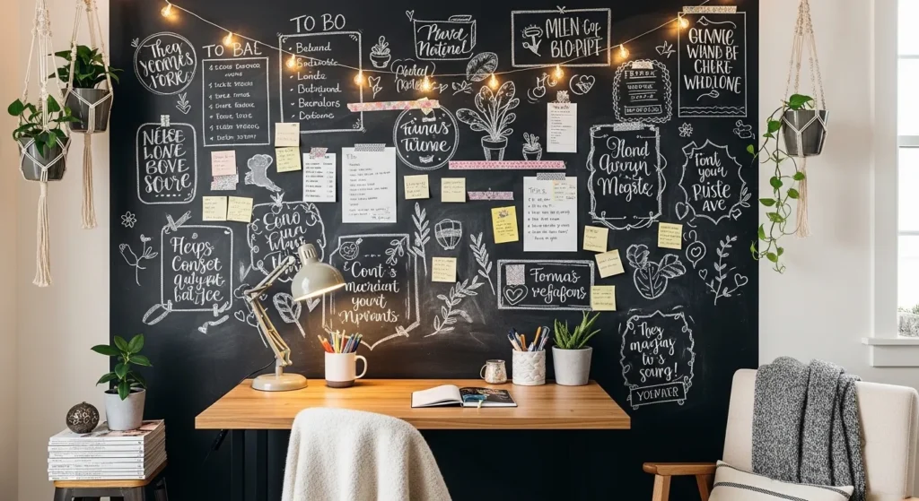 A chalkboard or memo wall adds functionality and personality. Use it for reminders, doodles, or art without taking up space.