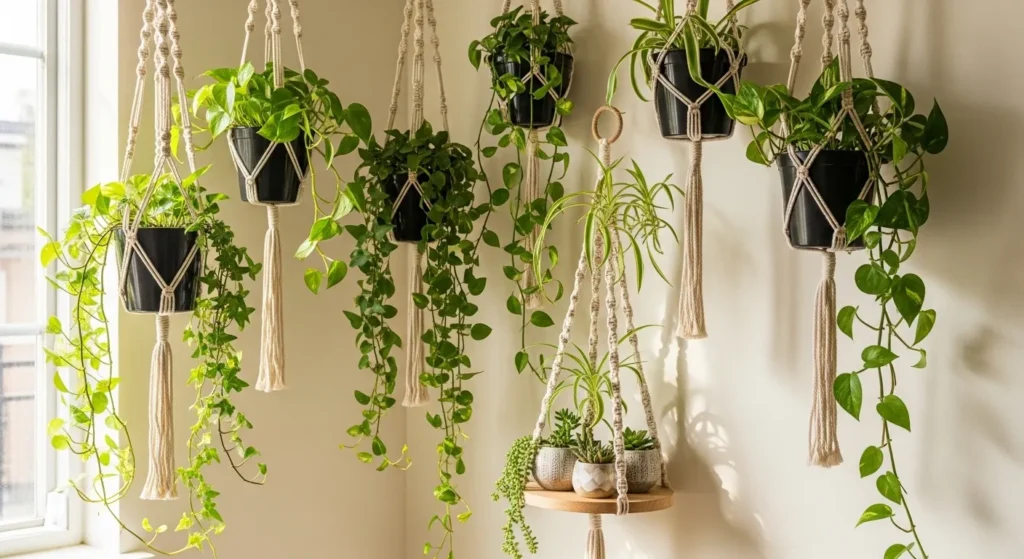 Hanging plants add color and life without occupying floor space. They’re ideal for tiny apartments where space is limited but greenery is desired.