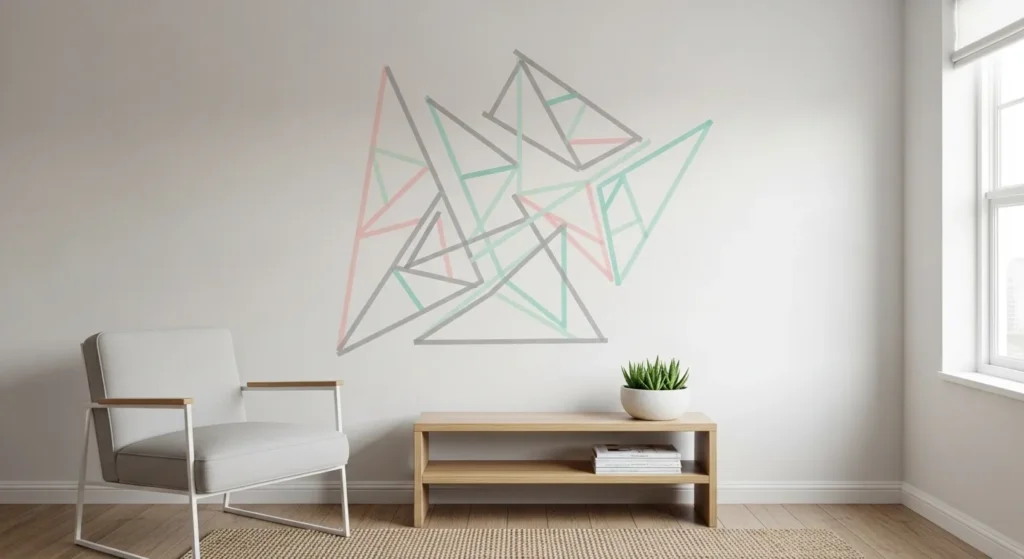 Washi tape or painter’s tape allows you to create patterns, frames, or geometric shapes on walls without permanent changes. It’s a cost-effective, temporary wall decor idea.