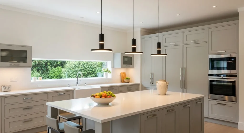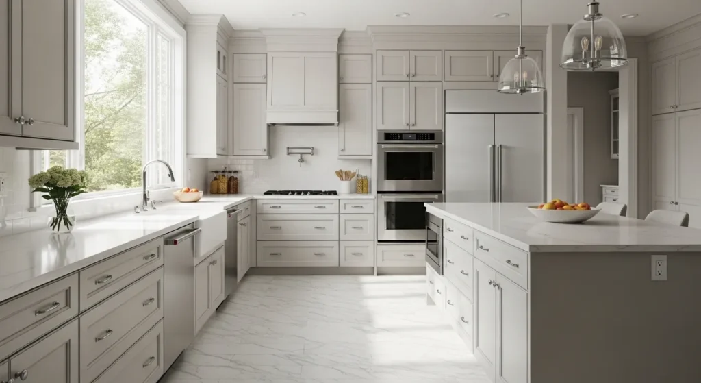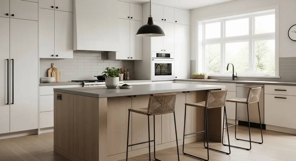 A neutral wall color instantly elevates a kitchen’s aesthetic. Shades like soft taupe, warm grey, or crisp white create a timeless, high-end feel without the cost of remodeling.