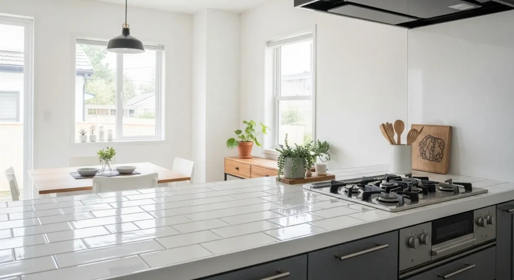 Faux countertop tiles or adhesive panels mimic expensive stone or tile finishes without breaking the bank. They’re ideal for temporary upgrades or rental kitchens.