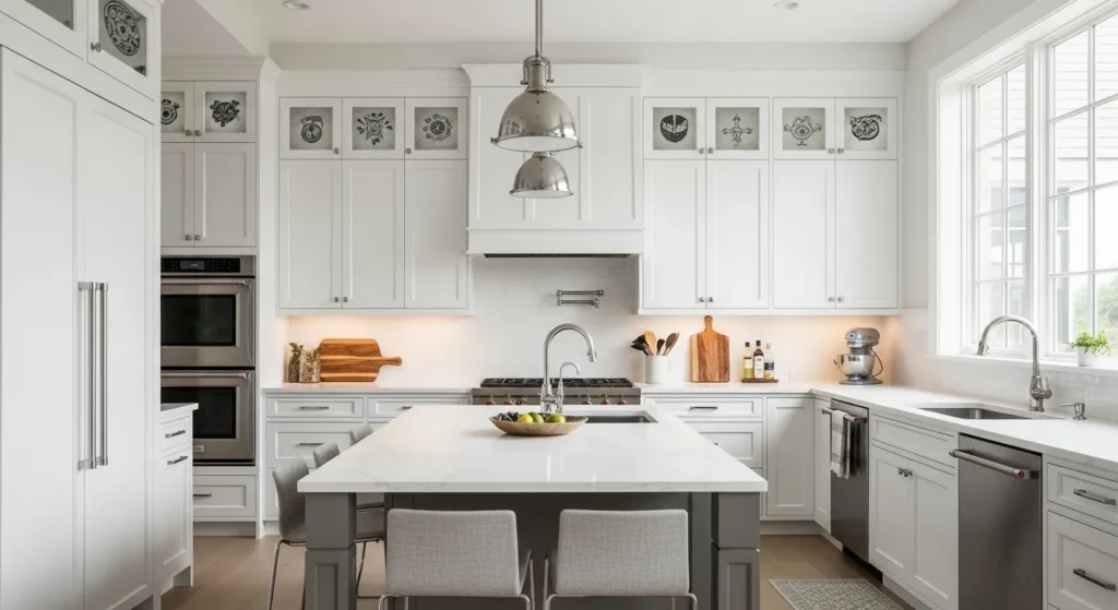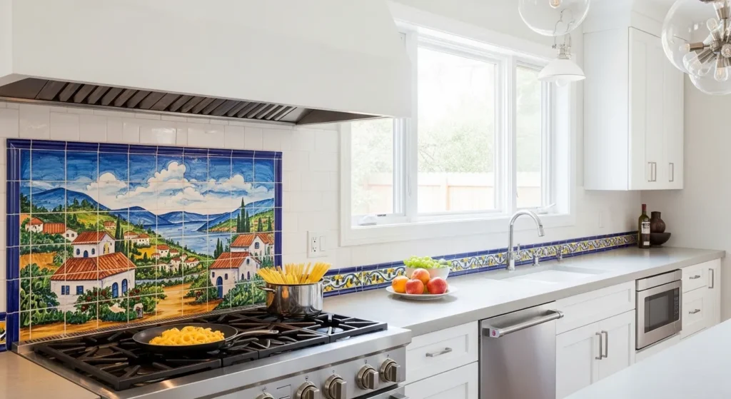 Coordinate the painted tiles with cabinetry and decor. This inexpensive update brings personality and sophistication, proving that even small changes can make a kitchen look luxurious.