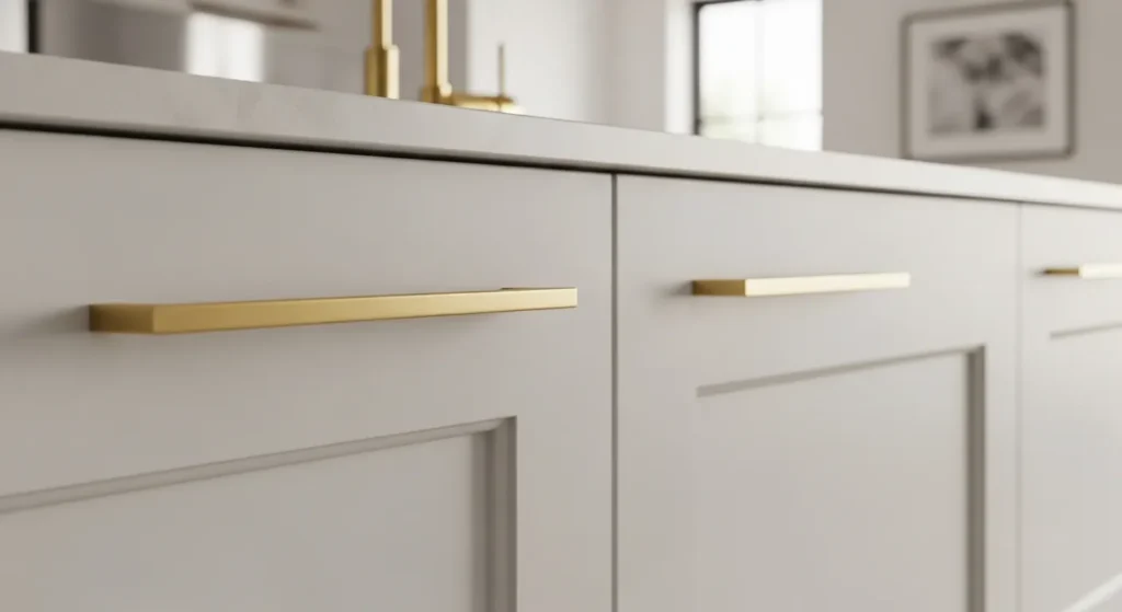 Changing cabinet knobs and pulls is a small upgrade with a big visual impact. Opting for metallic finishes like brushed gold, matte black, or polished chrome instantly adds sophistication.