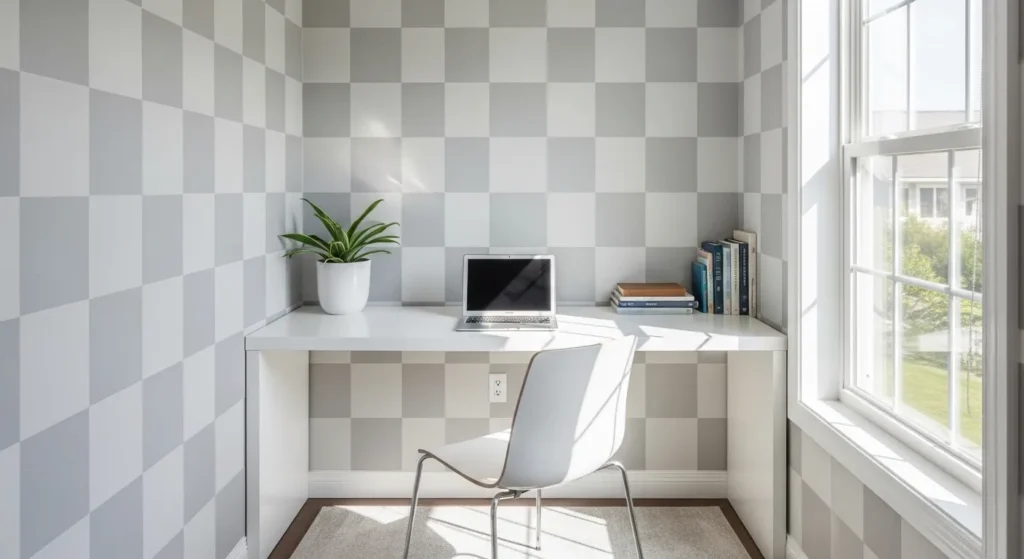 Pair with light furniture and minimal decor to preserve the sense of openness. Using a subtle checkerboard on a single wall or throughout the room can energize the space, making it feel larger and more dynamic without overcrowding the walls.