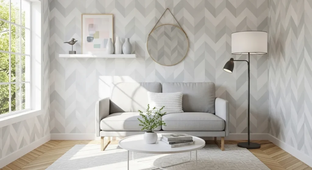 This style works well on feature walls or throughout small spaces for a modern, lively feel. Combine with minimal furnishings and neutral decor to prevent the pattern from dominating, while still tricking the eye into seeing a larger, more expansive room.