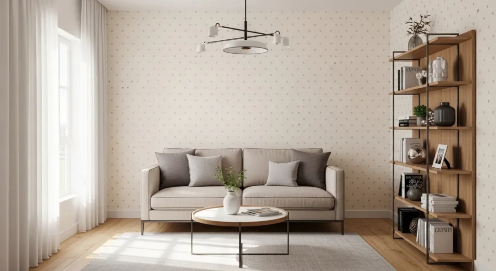 Pair with neutral furniture and minimal accessories to maintain openness. This wallpaper style works perfectly in small bedrooms, nurseries, or cozy corners, adding charm while expanding perceived space.