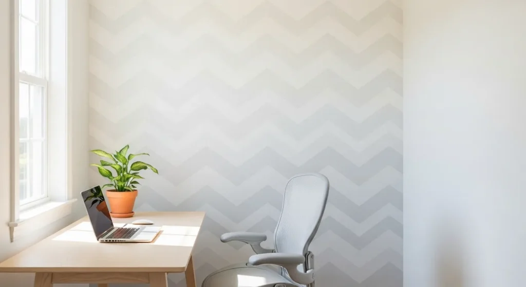 Gradient chevron patterns elongate walls while adding a soft depth to the room. The gradual transition in color enhances the sense of verticality and space without overwhelming the eye.