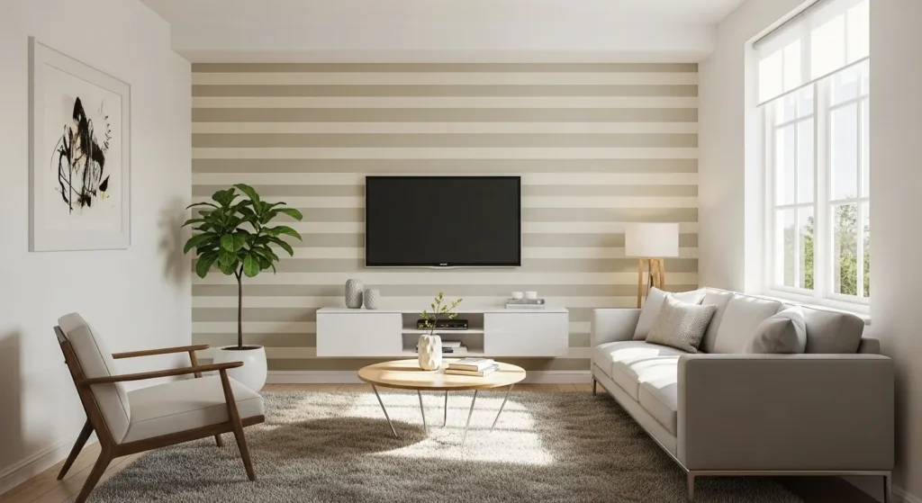 Horizontal stripes expand the perception of width, making narrow rooms feel more spacious. Light, neutral tones combined with subtle contrasts help stretch walls visually without overwhelming the senses. This works well for hallways, small living rooms, or cozy dining spaces.