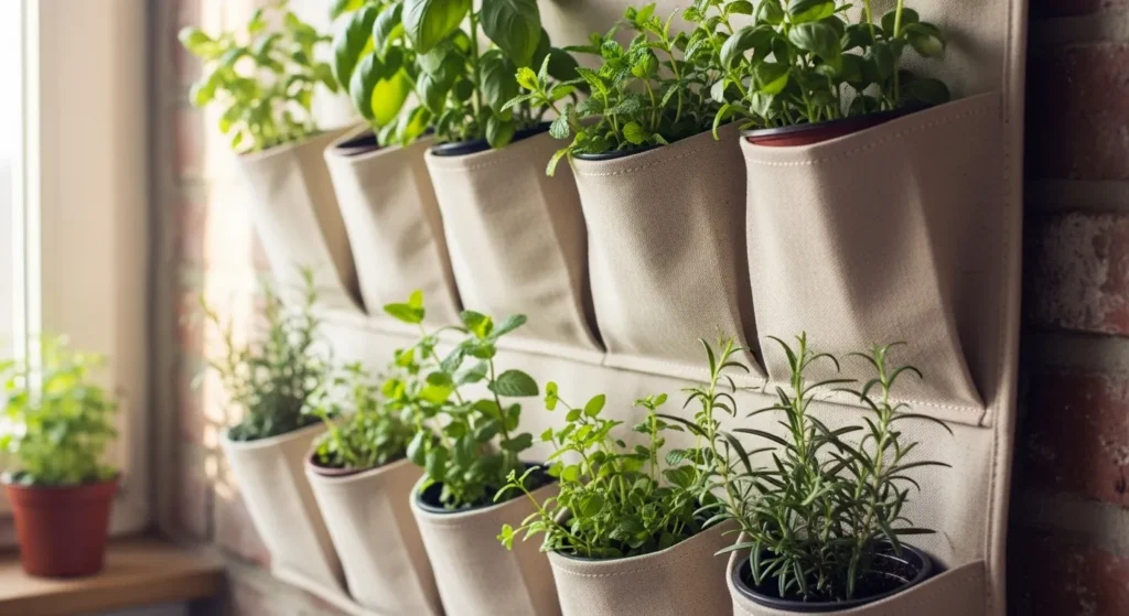 Canvas or fabric wall pockets allow multiple plants to grow in compact spaces. Herbs and small flowers thrive in pockets while soil is contained neatly. This lightweight solution is perfect for indoor or balcony gardening.