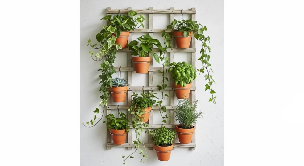 Use decorative planters or match the trellis finish to your decor. This solution maximizes vertical space, encourages healthy plant growth, and creates a lush, Pinterest-ready wall display.